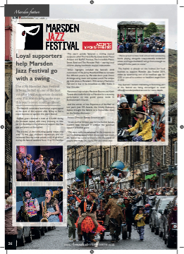 Marsden feature Loyal supporters help Marsden Jazz Festival go with a swing The 27th Marsden Jazz Festival is being hailed as one of the best yet after loyal supporters donated over £12,000 to help make sure this year’s event could go ahead. The festival’s committee launched an urgent appeal at the start of the summer after failing to fifind a major business to sponsor this year’s festival. Festival goers donated a total of £12,600 during the six-week appeal, with many choosing to take part in the Adopt a Gig scheme to support the free gigs and events at the festival. The success of the fundraising appeal meant that over 70 free gigs, children’s workshops, and the renowned Saturday street parade could all go ahead during the festival weekend from 12 to 14 October. This year’s parade featured a moving musical sculpture called The Hurly Burly, street bands Peace Artistes and BLAST Furness,The Incredible Plastic Street Band and The Marsden Mob – starring local children playing handmade musical instruments. Other highlights included the festival’s 2018 commission of the Jonny Mansfifield Elftet to recreate fifive different poems by Marsden-born poet Simon Armitage using music and spoken word.The unique gig took place in Marsden’s 19th century Mechanics Hall and is due to be broadcast on BBC Radio 3 later this year. Renowned improvisers Matthew Bourne and Keith Tippett also made the trip to Marsden for a stunning performance on two grand pianos inside St Bartholomew’s Church. And the winner of ‘Live Experience of the Year’ at last year’s Jazz FM Awards, the Orphy Robinson Septet, brought the festival to a memorable close on the Sunday afternoon. Artistic Director Barney Stevenson said: “It was another brilliant year for the festival but we couldn’t have managed it without the generous support of festival goers. “We were really overwhelmed by the response to our fundraising appeal which shows just how much the festival has come to mean to the thousands of people who make the trip to Marsden every year. “We’re proud to have local school and community bands playing alongside internationally acclaimed artists, and hope the festival will go from strength to strength in the years to come.” The festival is already on the lookout for local business to support Marsden Jazz Festival 2019, either by sponsoring one of its headliner gigs for £250 or one of its outdoor or headliner stages from £1,000. Any business owners interesting in becoming part of the festival are being encouraged to email offifice@marsdenjazzfestival.com for more details. 26 www.AroundSADDLEWORTH.co.uk