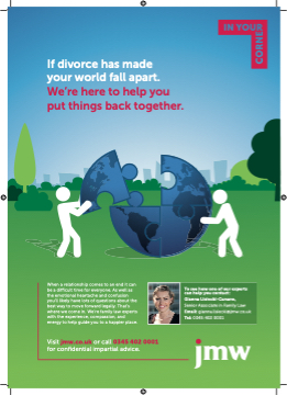If divorce has made your world fall apart. We’re here to help you put things back together. When a relationship comes to an end it can be a diffiffifficult time for everyone. As well as the emotional heartache and confusion you’ll likely have lots of questions about the best way to move forward legally. That’s where we come in. We’re family law experts with the experience, compassion, and energy to help guide you to a happier place. Visit jmw.co.uk or call 0345 402 0001 for confifidential impartial advice. To see how one of our experts can help you contact: Gianna Lisiecki-Cunane, Senior Associate in Family Law Email: gianna.lisiecki@jmw.co.uk Tel: 0345 402 0001