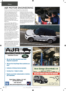 Working Mag32-end.qxp_mag 02/05/2017 12:06 Page 72 Motors Motoring AJR MOTOR Your local Land Rover/Range Rover Specialists ENGINEERING England.They only employ highly skilled reputation to become one of the leading motor e mechanics and engineers, including the well in the North West of England. They only employ kmneocwhnanmicescahnadniecnSgtienveerCs,aimncplbuedliln, gwthoe well kno takes motor engineering seriously. If you have a Range Rover or Land Rover, or an If you have a Range Rover or Land Rover, years of experience in these areas and have a far or an electronic fault with your vehicle, AJR Motor Engineering are the company you should be talking to.They have over 25 years of experience in these areas and have a far reaching reputation for providing exceptional service when it comes to electronics and ECUs. AJR Motor Engineering provide repairs and servicing, MOT tests, ECU / electronic fault diagnostics and tyre fifitting / repairs.They offer both commercial and private vehicle MOT testing, mechanical, electrical, or Tel: 0161 626 5412. Motoring AJR MOTOR ENGINEERING advertisement feature AJR Motor Engineering is a team built bodywork & crash repairs and routine from passionate, highly skilled motor servicing. If you live or work in Oldham, Your local Land Rover/Range engineers who love what they do.They Rochdale, Bury, Middleton or surrounding believe in delivering simple, honest and clear advice and services to each customer areas of Greater Manchester, and your car needs some attention, call AJR Motor Engineering for advice. Repairs on all other makes/models of vehicles also undertaken. Rover Specialists regardless of the size of job at hand, whether that is taking a quick look at a loose exhaust pipe through to a full AJR Motor Engineering is a team built from passionate, highly skilled For more information on all the services imnsopteocrteionngionfeearnsEwChUoliosvsueewwhaiththeigyhdoen.dTheybelieveindelivering AJR Motor Engineering offer, please go to RsaimngpeleR, hoovnere.st and clear advice and services to each customer regardless of the size of job at hand, whether that is taking a quick Owned by Alister Rigby, AJR Motor 0161 626 5412. look at a loose exhaust pipe through to a full inspection of an ECU Engineering take pride in their reputation issue with high end Range Rover. to become one of the leading motor engineering stations in the North West of www.ajrmotorengineering.co.uk or Tel: take pride in their ngineering stations highly skilled wn mechanic Steve Campbell, who takes motor engineering seriously. electronic fault with your vehicle, AJR Motor Engineering are the company you should be talking to. They have over 25 reaching reputation for providing exceptional service when it comes to electronics and ECUs. AJR Motor Engineering provide repairs and servicing, MOT tests, ECU / electronic fault diagnostics and tyre fitting / repairs. They offer both commercial and private vehicle MOT testing, mechanical, electrical, bodywork & crash repairs and routine servicing. If you live or work in Oldham, Rochdale, Bury, Middleton or surrounding areas of Greater Manchester, and your car needs some attention, call AJR Motor Engineering for advice. Repairs on all other makes/models of vehicles also undertaken. For more information on all the services AJR Motor Engineering offer, please go www.ajrmotorengineering.co.uk Owned by Alister Rigby, AJR Motor Engineering LJH Motorhome Storage & Maintenance Established 25 years • We use the latest specialist Land Rover diagnostic equipment! • "We love the tricky Range Rover problems you hate!" • Collection & Delivery Service Available • Courtesy Cars - Subject to status • Repairs on all other makes/models of vehicles also undertaken. Clyde Street • Oldham • OL1 4HT (off Riponden Road) 0161 626 5412 www.ajrmotorengineering.co.uk Secure Storage Facilities Servicing and Maintenance Valeting 88 around SADDLEWORTH 72 www.AroundSADDLEWORTH.co.uk www.AroundSADDLEWORTH.co.uk Get your vehicle ready for the Autumn! For more information please contact: Telephone: 07415 850614 www.aroundsaddleworth.co.uk 87