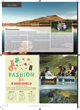 Out and about Dovestones Panoramic picturesque perfection on your doorstep With Dovestones you have a wealth of activities and Leisure opportunities at every turn. This unique location offers you the magnifificent Peak District on your doorstep, with its stunning views, walks and countryside activities all combined with our beautiful stone villages, great dining and days out to remember. The Peak District National Park offers a spectacular variety of scenery for walking and rambling routes – from limestone dales to dramatic high moorlands. There are walks to suit individuals, families and groups – whether you want a challenging hike or a short stroll, whilst Dovestone Reservoir itself is a popular location providing a circular walk of 2.5miles offering stunning views and giving access to two further reservoirs, Greenfifield and Yeoman Hey to the north. Since the Countryside and Rights of Way Act (2000) walkers now have the right to walk at will on any of the moorland areas regardless of whether they are privately owned. Take to the waters at one of the peak districts National reservoirs and you will fifind a great way to escape the hustle and bustle of daily life. Dovestones Sailing club is right on your doorstep and it welcomes both families and individuals and the Reservoir provides ideal sailing waters for all levels of ability. Whether you are taking your fifirst steps aflfloat or want to develop your skills, they have a dedicated team of instructors and coaches to look after you.You don’t need your own boat - all equipment is provided. Dovestone holiday Park provides the perfect location to help you enjoy all the local sight, activities and amenities. If you have family of friends coming to stay or you in fact want a replace to stay whilst your place is being renovated or your in between homes then a number of luxury cabins and pods are available. For more information please go to.... Telephone:01457-820451 Website: www.dovestonepark.co.uk Facebook: www.facebook.com/dovestonepark 16 www.AroundSADDLEWORTH.co.uk