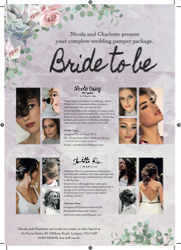 26 01457 820348, but will travel. Health and Beauty Nicola and Charlotte present your complete wedding pamper package. Bride to be Nicola Casey specialises in weddings, which Nicola feels is important when choosing a make-up artist for your special day. Nicola has been in the industry for many years and her job is a passion and a love that she feels shows in her work and personality. Nicola has worked and trained with the best celebrity make-up artists which shows in her work. Nicola Casey Instagram Nicola Casey MUA FB. Nicola Casey MUA Nails and Beauty * was Nicola Gerrard Nails and Beauty Nicola - nicolaforshaw40@gmail.com Charlotte Rose is a passionate wedding hair specialist who dedicates her time and expertise from the start of your bridal journey, through to the big day. Charlotte is a self taught hair enthusiast/ freelance hair stylist who started styling hair at the age of 17 and has never looked back. Charlotte has over 7 years in the bridal/ wedding industry. Charlotte Rose Instagram @Charlotterosehairstylist FB Charlotte Rose Hair Stylist charlotterosehairstylist@gmail.com Nicola and Charlotte can work as a team or solo, based at Jo Ferns Salon, 85 Oldham Road, Lydgate OL4 4JF www.AroundSADDLEWORTH.co.uk