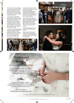 The Bride wore a stunning wedding dress by Adele Howarth.This creation consisted of a bodice with a Samira Embroidered Motif shimmers with every movement, and the flflowing Soft Netting skirt with a sweep train which looked simply beautiful. The bridesmaids complimented Georgia perfectly in baby blue dresses with crystals on the bodice including soft tulle skirts which were by dressmaker Lynn from Sew Fabulous in Rochdale, as were the cravats. In addition, the gentlemen wore Stylish top hat and black morning suits with grey pin striped trousers, supplied by Denis Hope of Rochdale. The couple’s wonderful wedding cake was expertly created by Confetti and Crumbs and consisted of 5 Tire wedding cake with sugar iced flflowers , flflavours tiers of cake - Fruit Cake, Carrot cake, Chocolate Orange, Lemon Drizzle and Toffee cake. During the service, the couple exchanged beautiful rings by Mutters and Sons.The whole day was captured perfectly by photographer Christopher Lewis Photography and videographer Sky Weddings.The flflowers were expertly created by Love My Flowers and consisted of White Roses and Blue Hydrangeas. Very special mentions must go to Peter Aust the excellent Toast Master, Rollers who supplied the wedding cars, page boy Ralph Allcock and ring bearers William Howard & Tyler Allcock, as well as all the friends & family who made this special day possible. Following their big day, the couple honeymooned in New York and Mexico. The whole team at the Around Saddleworth & Tameside Magazine would like to take this opportunity in wishing Georgia and James a long and happy life together. We love a good Wedding here at Around Saddleworth and Tameside If you would like to share your big day, like these happy newlyweds, then just let us know. We would LOVE to feature the happiest day of your life! Alslso... If you are a Wedding venue, supplier or photographer and you would like to showcase your business to potential couples, then get in contact today for some fantastic advertising opportunities on: Tel: 07817915686 or email:paul@aroundsaddleworth.co.uk www.AroundSADDLEWORTH.co.uk www.AroundSADDLEWORTH.co.uk 29 Weddings
