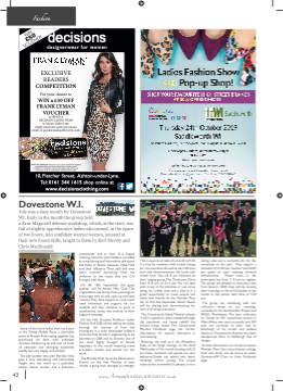 Fashion decisions designerwear for women 10, Fletcher Street, Ashton-under-Lyne. Tel: 0161 344 1615 shop online at www.decisionsclothing.com EXCLUSIVE READERS COMPETITION For your chance to WIN a £50 OFF FRANK LYMAN VOUCHER to SPEND at DECISIONS LADIES WEAR in Ashton-Under-Lyne, simply email your name and contact details to paul@aroundsaddleworth.co.uk Terms & Conditions voucher can only be redeemed against purchase of any full priced item from Frank Lyman Collection. Cannot be used to purchase sale items and cannot be used in conjunction with any other offer. Dovestone W.I. July was a busy month for Dovestone WI. Early in the month the group held a Krav Maga self defence workshop, which, at the start, was full of slightly apprehensive ladies who turned, in the space of two hours, into confifident warrior women, amazed at their new found skills, taught to them by Karl Mcvety and Chris MacDonald. Some of the brave ladies then took part in the Pretty Muddy Race, a charitable event at Heaton Park, racing together but sponsored for their own individual charities, clambering up and over all sorts of obstacles and emerging extremely muddy but very happy at the fifinish. The July speaker was Joan Harthan who gave a very interesting and informative insight into her work as a published author, dream worker and a Shamanic 42 practitioner and at their 21st August meeting, historian John Wallace provided an entertaining and informative talk about the Yanks in Britain between 1942-1944 and their inflfluence ‘Over paid and over here’, covered everything from the uniforms to the music that the G.Is brought with them. On the 18th September, the guest speaker will be Andy’s Man Club. This organisation was set up three years ago to encourage men to talk, open up and seek counsel. They have helped to raise much need awareness and support for our menfolk and they continue to grow in membership across the country at their support meetings. On the 16th October, Professor Isobel Pollock-HulfOBEwillbetalkingtheladies through her journey of how she triumphed in a male dominated industry tobethefifirstfemaleinengineeringtobe awarded an OBE and to become one of the most highly thought of female engineers in the world receiving many accolades, medals and awards for her work. The Monday Meet Up at the Reclamation Rooms on the fifirst Monday of each month is going from strength to strength. This is open to all ladies from 6.30 to 9.30. It is free for members with a small charge for non-members.As well as the craft area and craft demonstrations, the book club meets from 7pm till 8 pm followed by their singing group,The Dovestone Divas from 8.15 pm to 9.15 pm. You can take part in any of the activities or just come along, for coffee, cake and a chat. It is a great opportunity to meet people and make new friends. At the Monday Meet Up on the 2nd September Alison Keane will be sharing and demonstrating her love of all things macraméé. The Countryside Safety Marshal scheme is still in operation when needed although the persistent and heavy rainfall has calmed things down! The Countryside Marshal Facebook page has further information for anyone interested in volunteering. Meetings are held at in the Wimberry Suite at the Royal George on the third Wednesday of the month starting at 8.15 pm. New members and guests are very welcome.Guests can attend two taster meetings before joining. The annual subscription, renewable in January, is on a sliding scale and is currently £21 for the remainder of the year. They require a donation of £1.00 per member and £3.00 per guest at each meeting towards refreshments. Please meet in the downstairs bar from 7.15 pm to register. The group are pleased to announce that from January 2020, they will be moving their meetings to the third Tuesday of the month at the earlier start time of 7.30 p.m. The group are continuing with our collection boxes at our meetings, currently for for the Red Box Project and MASH, Manchester. The June collection for ‘Smalls for All,’ supporting women in WestAfrica,wasverysuccessfuland300 bras are currently on their way to Edinburgh to be sorted and packed, thankstoTranspennineExpresswhohave transported them to Edinburgh free of charge. Further information on all future events, Monday Meet Ups, trips, theatre outings, food and drink, can be found at www. DovestoneW1.Com or their Facebook page. www.AroundSADDLEWORTH.co.uk WIN £50 VOUCHER