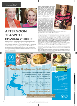 6 www.AroundSADDLEWORTH.co.uk Out and About Edwina was blown away by the turn out and at one time was heard to say ‘WOW’ when looking out over the room at the start of her talk.The tables had been set for a delicious afternoon tea, served by Charles and his team to whom we are truly grateful, with each table being named after places in Oldham and Saddleworth. Edwina held the room captivated with her explanation of “Lies, Damed Lies and Politicians”. Her talk was peppered with insights from her time in politic and, of course, the high profifile headlines she attracted at the height of her career. During her time in government she introduced cancer screening for women and the fifirst AIDS campaign.The furore around her comments about salmonella in eggs brought about changes resulting in the UK now having the safest eggs in the world. She invited the audience to ask her questions and when the “John Major” subject came up, like a true politician, she batted it away with great political expertise and she gave us all a master class in how to handle diffificult questions. Edwina made sure that she went to every table in the room before the event and during the break to try and speak to everyone, and was even up for selfifies, of which many have appeared on Facebook. She is donating her fee to Tideswell Male Voice Choir of which her husband, John Jones, is a member and she is President. Her diaries at the time of publishing, had been called “the best record of a woman’s experience in parliament”. Edwina brought copies of the book to sell and sign and sold out within minutes. She is the author of many books and these titles can be found in ebooks.A friendly and relaxed speaker, she left with a lot of fans! In the 20 years since leaving politics she’s been a regular reality TV star, notably Hell’s Kitchen, I’m a Celebrity, Strictly,Wife Swap and Family Fortunes. She’s won Celebrity Pointless with Diane Abbott MP and Celebrity Mastermind twice. Edwina says “Well, that went well! “ and she is certainly correct in that comment. One of the member when leaving the event commented “how are we going to top this next year”. From the smiles, cheers and laughter around the room we think we can safely say that Sunday 14th July was a great success and the WI hope that they will be able to equal or better this sometime next year. AFTERNOON TEA WITH EDWINA CURRIE The Saddleworth WI members, friends and supporters turned out in their droves last Sunday, 14th July, to have afternoon tea with former MP and reality TV star, Edwina Currie. The day was a sell out with over 130 guest buying tickets. The Oak Room at the White Hart, Lydgate was the perfect venue for this event showcasing Saddleworth WI, The White Hart and, of course, our beautiful countryside.