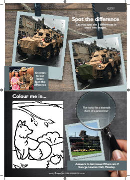 Where am I? Spot the difference Can you spot the 5 differences in these two images. Answers to last issues Spot the difference Colour me in... This looks like a beanstalk short of a pantomime? www.AroundSADDLEWORTH.co.uk 71 Answers to last issues Where am I? George Lawton Hall, Mossley. KIDS Have you seen me round abouts?