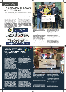 Sport and Wellbeing FA GROWING THE CLUB – 3D DYNAMOS NEW - Saddleworth 3Ds Football School for 7-12 year olds – Better Never Stops With the new committee in place, 3D Dynamos have developed a twelve- month strategy and are working on longer term plans for growing the Saddleworth-based football club. Lesley Milne (Club Secretary) and Howard Gaunt (Club Treasurer) recently attended an FA workshop to assist in ‘Growing the Club’. Following a debrief at the subsequent committee meeting, approval was given to set up a new Saddleworth 3Ds Football School for 7-12 year olds; adding to the long running Soccer School for 4-6 year olds.This will commence in September at Waterhead Academy from 7.00-8.00pm and is open to boys and girls of any ability, whether they are already a member of the club or not. If you are interested then please feel free to contact John Lees (Under 10s Coach) or Lesley Milne for further details. 3D Dynamos 1st and Reserves on the move to the Lancashire Amateur League Another initiative of the twelve- month strategy was to move the adult section of the club into the Lancashire Amateur League and onto pastures new. Steve Laithwaite (1st Team Manager and Chair) and Neil Beevor (Reserve Team Manager) see this as a big step forward and are looking forward to the challenges ahead. Steve said ‘After a successful eight-year spell in the Huddersfifield League - a league title and three cup wins - we felt it was the right time for a change. New shirt (Saddleworth Round Table) and Match Day training tops (The Gate Inn, Diggle), different teams, new grounds to visit and with the current squad of players we believe both teams can make a quick transition and rise to the new challenges. Pre-season started on Monday 1 July and the season commenced on Saturday 17 August for the 1st team with a trip away at Wardle FC, with the reserves facing Accrington Amateurs at Firgrove on Saturday 31 August. 86 www.AroundSADDLEWORTH.co.uk SADDLEWORTH VILLAGE OLYMPICS 2019 Preview Not long to go now before the 34th ‘Saddleworth Village Olympics’ get underway and the excitement and tension is rising! Around 1000 children will compete across 18 disciplines in 7 ‘village’ teams covering the 13 villages that make up Saddleworth. Children will pit themselves against their friends and neighbours to win points for their village or their school’s village, with the village(s) with the highest points claiming victory in each discipline and one overall winning village in both the junior and senior categories. Children from all of the Saddleworth villages have been training hard, making new friends, having fun and trying new sports since June (some even through the winter and spring) and are ready to give it all their all to win medals for themselves and their village team. The Saddleworth Village Olympics kick off with an opening ceremony, which this year will have a very different feel about it....with a brass band, coloured flflags and gymnastic ribbons, cheerleaders, the coming together of the seven Olympic Rings and a little surprise! The Village Olympics don’t organise or fund themselves and we’re delighted to have received help and very generous support from local businesses in Saddleworth and Oldham to make the event extra special this year. This year we’re especially pleased to welcome the Saddleworth Round Table as our main sponsor for the Village Olympics, and as part of this partnership they will have a tent at the opening ceremony promoting their winter activities, including the Oktober Pie fest and Santa dash. Matthew Sykes from the Round Table commented “This event is unique and really engages children of all ages and abilities to get involved in sporting activities across all villages and shows just how important our communities are”. Adrian Green, Chairman of the Saddleworth Village Olympics welcomed the Support saying “the work and effort that goes in to making the 3 weeks of competition a success if nothing short of phenomenal. We just couldn’t achieve this without the Saddleworth Round Table cheque presentation (Left to right) Andrew Rothwell (Round Table Chairman), Adrian Green (Saddleworth Olympics Committee) and Matt Sykes (Round Table charity projects) efforts of the committee, the coaches, the parents, the enthusiasm of the children or the support of organisations like the Round Table, so thank you - You’re amazing!” Many small local businesses who have donated money and rafflfle prizes as part of our ‘Proud Sponsor’ initiative, so please make sure you visit them, if only to say thank you. If you’d like to make a donation as a ‘Proud Sponsor’ or would like to suggest any other funding raising ideas then they should e-mail svogames@gmail.com The Olympics start on Saturday 7th and fifinish on Sunday 22nd September. If you are new to the area or unfamiliar with the Olympics then you can fifind out more information on their website which is www. saddleworthvillageolympics.co.uk.