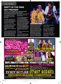Party in the Park EXCLUSIVE READERS COMPETITION For your chance to WIN a FAMILY TICKET (2 adults & 2 kids) simply email your name & contact details to paul@aroundsaddleworth.co.uk (T&C’s apply) Best of luck! 88 www.AroundSADDLEWORTH.co.uk PARTY IN THE PARK 2019 PREVIEW 14th year of one Saddleworth’s spectacular & best loved events promises to be the best yet! After an already fantastic summer of events, Saddleworth is once again gearing itself up for another end of season classic. An expected 1,200 revellers, come rain or shine are expected to come out in force to enjoy an afternoon and evening of merriment at Delph’s annual Party in the Park knees up. Once again this fabulous event will be held at Delph & Dobcross Cricket Club, and this year organisers are confifident this will be one of the biggest and best since it all began back in 2005. Last years lineup included the likes of Queen tribute band, Mercury, Malcolm Pitt with the magical sounds of Lionel Ritchie and Danny Lowrie, who is regarded as the best Robbie Williams tribute act in the country, as well as Ska Britannia and top local bands Flatline and Neon. This year, once again hosted by the one and only MIKE SWEENEY (musician and BBC GMR presenter), you can expect top performances from RULE THE WORLD (UK’s No 1 Take That Tribute Act), top Blondie and Debbie Harry tribute) FIONA SHAW, Michael Jackson tribute, FOREVER JACKSON and TANNI (Playing all your Bob Marley & Reggae favourites) to name just a few.Always a highlight, Delph Band will perform during the Proms fifinale and amazing fifirework display. Mr Phil Beck of the Wake Up Delph Committee said: “We’re looking forward to another great year in our 14th year.A massive thank you to everyone who has helped put this year’s show on so far, not only from Delph but elsewhere. Without them it simply couldn’t happen and a huge thank you must also go to all our sponsors, as well as the groups who book the Corporate packages and fifinally the fantastic on going support from the people and families of Delph and surrounding areas who will hopefully make this years party so very special.We have a superb line up of local and visiting artists so, weather permitting, this should be a cracker!” Party in the Park is organised every year to raise money towards the Delph Village Christmas Lights and other village community projects. For your chance to WIN a FREE FAMILY TICKET for this year’s event, then please enter the competition below the poster.